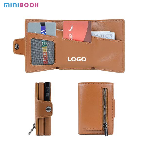 Custom Logo Travel Minimalist Metal Wallet with RFID Blocking and Auto Pop Up Feature Images |